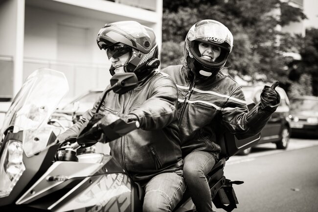 Côté passagers, 6 tours de quelques kilomètres les ont mené du pont historique Anne de Bretagne, au pont Tabarly avec sa voilure de haubans par la rive droite et fait revenir par la rive gauche paysagère... tous voulaient essayer une ou 2 motos.