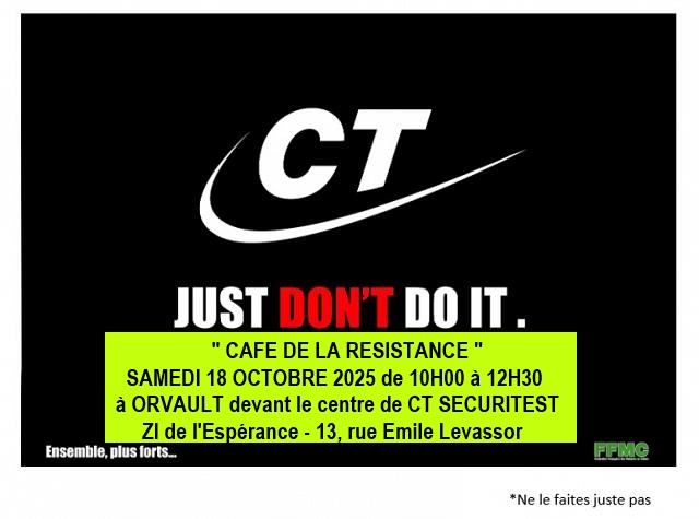 CT MOTO - Nouveau " Café de la Résistance " samedi 18 octobre 2025 de 10H00 à 12H30 devant le centre de CT SECURITEST - 13, rue Emile Levassor à ORVAULT