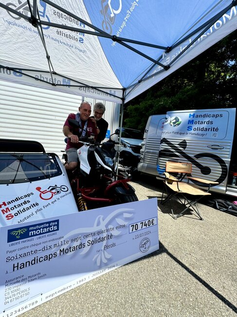 Ce 23 juillet, grâce à 4 500 parrainages solidaires réalisés en 2 ans, la Mutuelle des Motards a remis un chèque de 70 740 € à cette association.