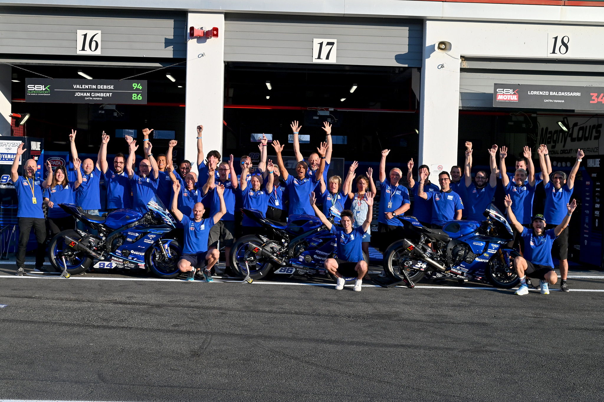 La 9ème épreuve du championnat du monde Superbike se déroulait en France. Devant 53 000 personnes dont 1500 supporters, membres du club GMT94 et partenaires, le pilote de la Yamaha 94 réalisait les deux premiers podiums de sa longue carrière internationale. Valentin s’offre également le record absolu de la piste en 600 cm3.