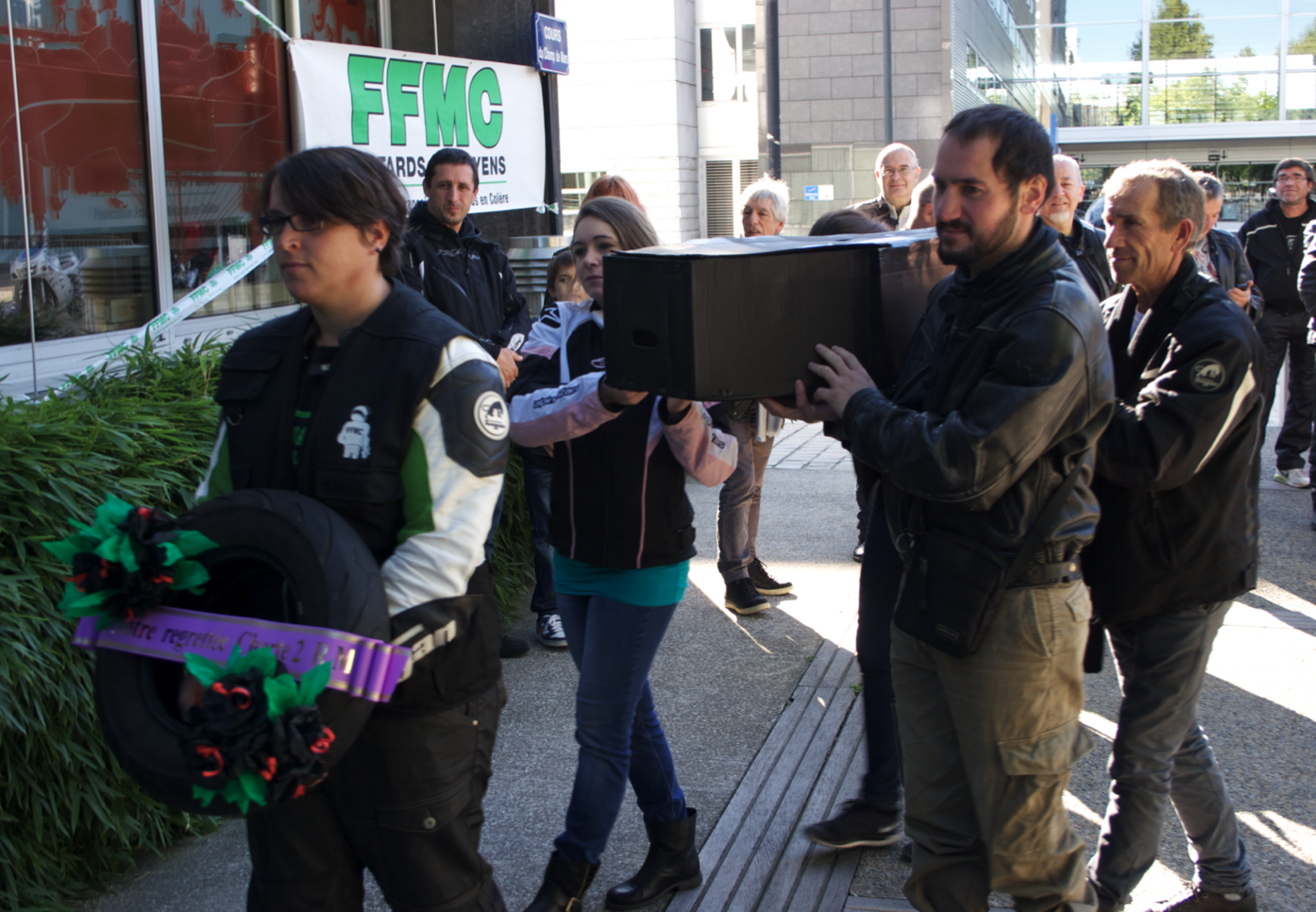 Samedi 19 septembre 2015, la FFMC 44 a symboliquement enterré la Charte des deux-roues motorisés devant le siège de Nantes Métropole.