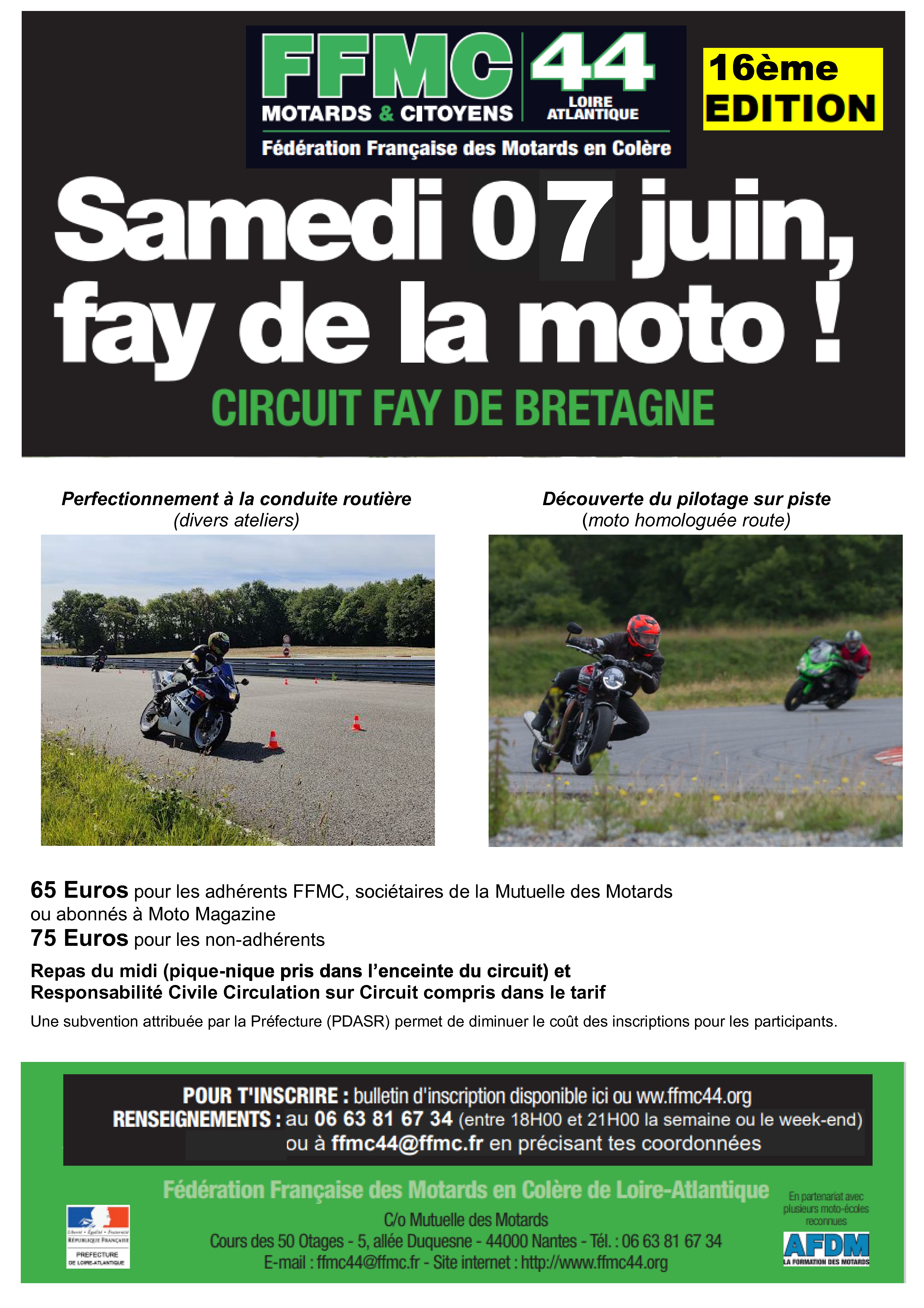 Notre prochaine journée sur le circuit de Fay-de-Bretagne (16ème édition) aura lieu le samedi 07 juin 2025. Les inscription sont lancées.