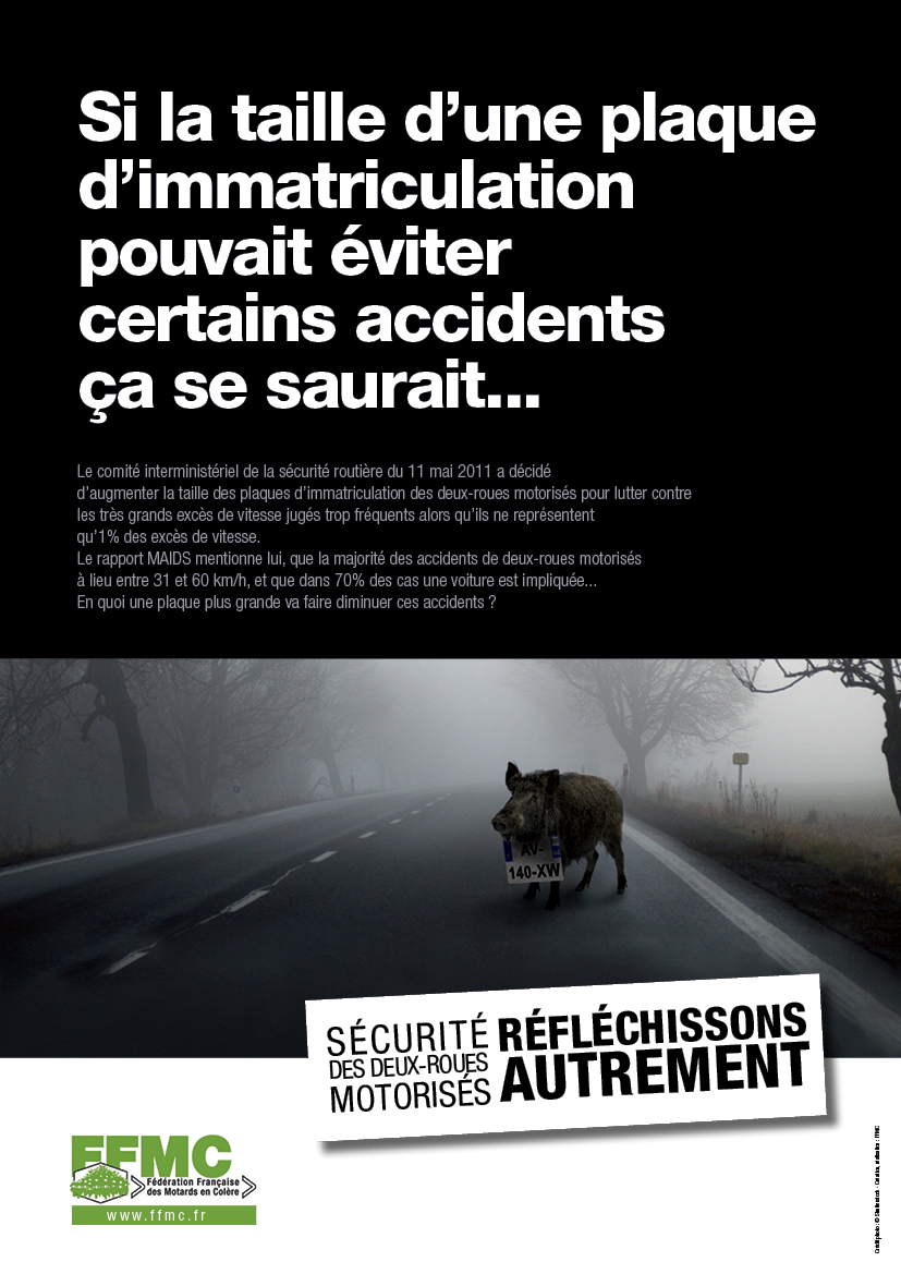 Le 1er juillet, c’est également la date de mise en application d’un arrêté du ministère de l’Intérieur obligeant tous les usagers de 2RM à se conformer à un modèle de plaque d’immatriculation d’une taille unique de 21 X 13 cm, alors que les anciens modèles de plaques au format 17 X 13 cm qui étaient légales jusqu’à maintenant deviennent illégales. Le délégué interministériel à la sécurité rentière (routière) prétend que cette nouvelle règle vise à protéger les motards grâce aux radars automatiques. Cette nouvelle obligation réglementaire n’est en fait qu’une mesure cosmétique et punitive à l’encontre des usagers de 2RM qui en ont assez de servir de gibiers de police au nom de la sécurité routière. Pendant ce temps-là, le réseau routier public se dégrade, les routes payantes sont de plus en plus chères et l’État engrange des millions d’euros grâce à la répression qui ne produit pourtant pas d’effet dans les statistiques de la sécurité routière, comme en atteste le bilan annuel de l’an passé qui a été rendu public la semaine dernière.