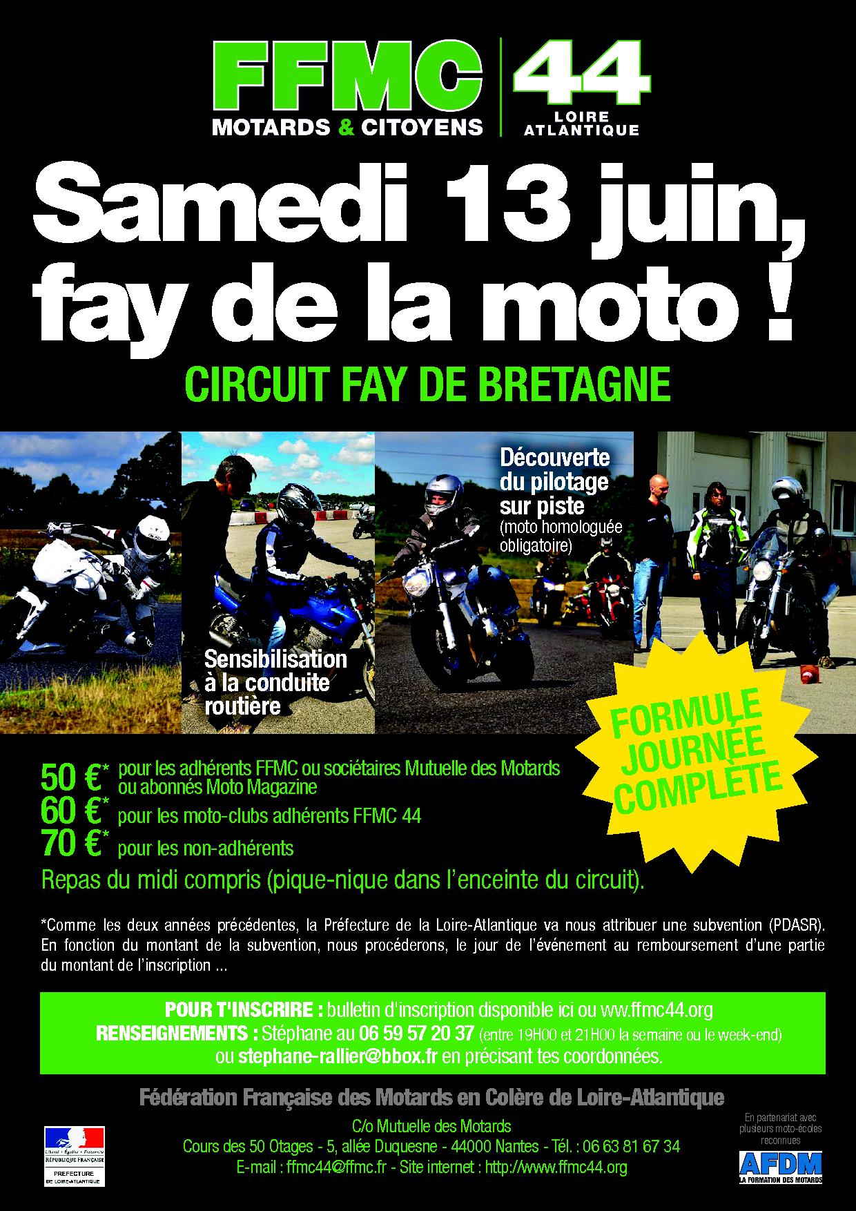 Journée « Faites de la moto » samedi 13 juin 2015 sur le circuit de Fay-de-Bretagne (44)