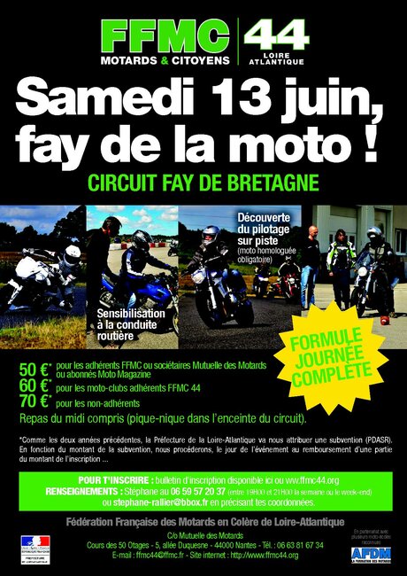 Journée « Faites de la moto » samedi 13 juin 2015 sur le circuit de Fay-de-Bretagne (44)