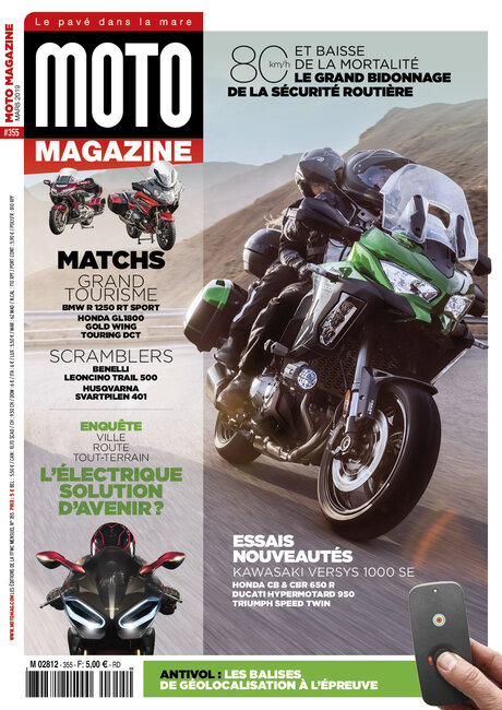Ce numéro se tourne vers le futur avec un dossier sur la moto électrique - qui fait le point sur sa pertinence, son impact écologique et son avenir commercial – et un test de balises de géolocalisation antivol. La moto 2,0 en quelque sorte. Plus classiques, nos comparatifs de machines grand tourisme et scramblers complétés par l’essai de 4 essais nouveautés. Moto Magazine vous fournit de l’info qui tient le pavé et n’hésite pas à en jeter aussi un dans la mare en démontant les chiffres de la Sécurité routière à propos de l’effet miracle du 80 km/h sur la mortalité routière…