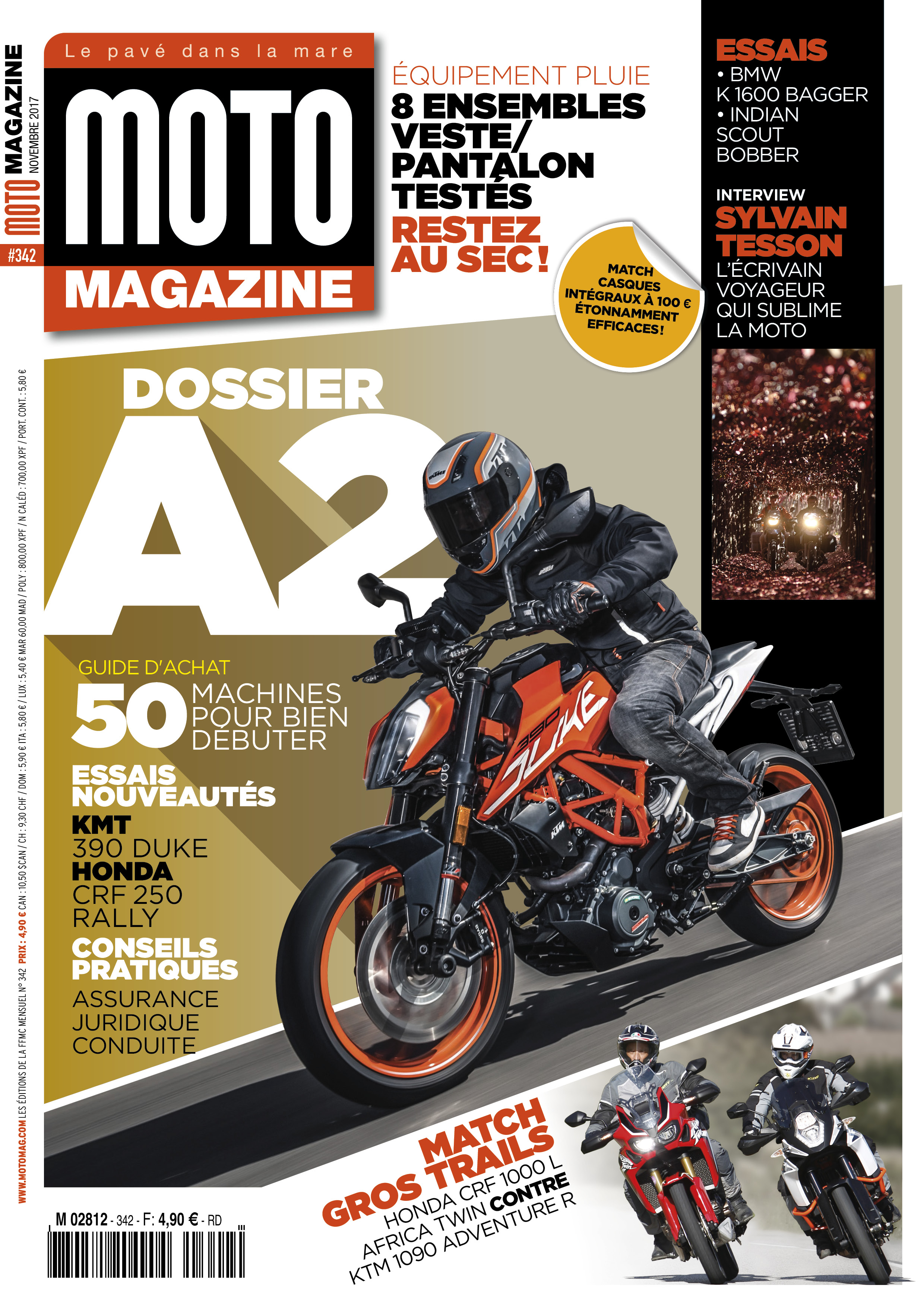 C’est l’été indien, et les températures clémentes encouragent à faire encore de la moto dans toute la France ! Et à acquérir une nouvelle monture … 4 nouveautés, un match gros trails et un guide d’achat de 50 motos « A2 » vous attendent, ainsi que des idées de balades et la découverte des voyages de l’écrivain Sylvain Tesson.