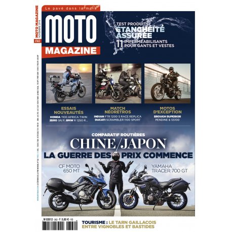 La roue tourne ! Dans le bon sens ? Nombre de motos chinoises de moyenne cylindrées viennent concurrencer japonaises et européennes à des tarifs canon (notre 1er match). Des américaines investissent le créneau du roadster néorétro (Indian FTR) et de l’électrique (Zero SR/F). La « grenouille » Honda Africa Twin veut se faire plus grosse que le « bœuf » BMW GS… Moto Mag reste lui les pieds sur terre et vous conseille. Tout comme pour partir en virée, dans le Tarn, ou imperméabiliser vos vêtements. Vive l’automne à moto !