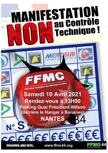 La manifestation à Nantes contre le contrôle technique moto samedi 10 avril 2021 - Rendez-vous à 13H00 Parking Quai Président Wilson - est MAINTENUE.