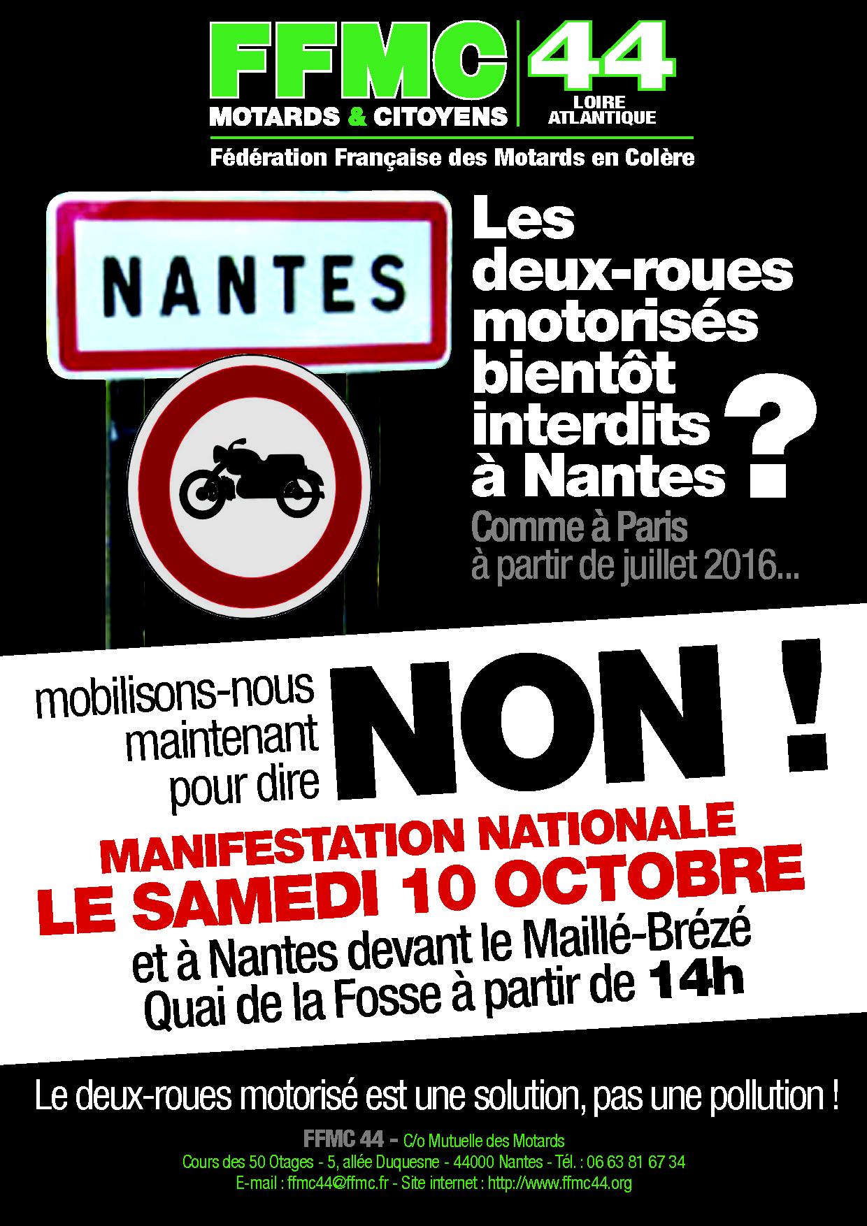Manifestation à Nantes le samedi 10 octobre 2015 contre les interdictions de circulation des deux-roues motorisés en ville