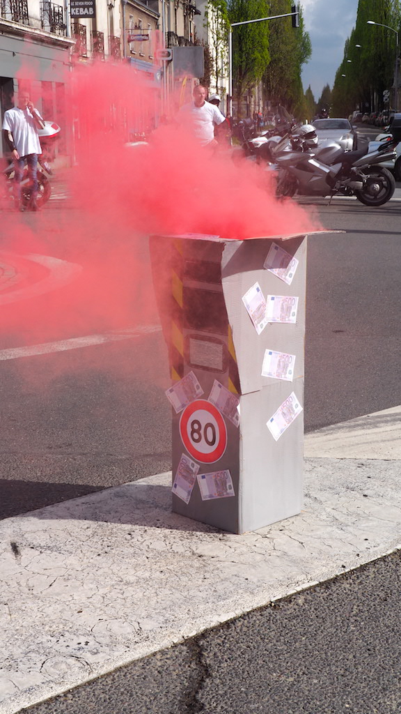 La poubelle - la vraie place du 80 km/h - promenée tout au long de la manif. n’a donc pu être déposée à la Préfecture …