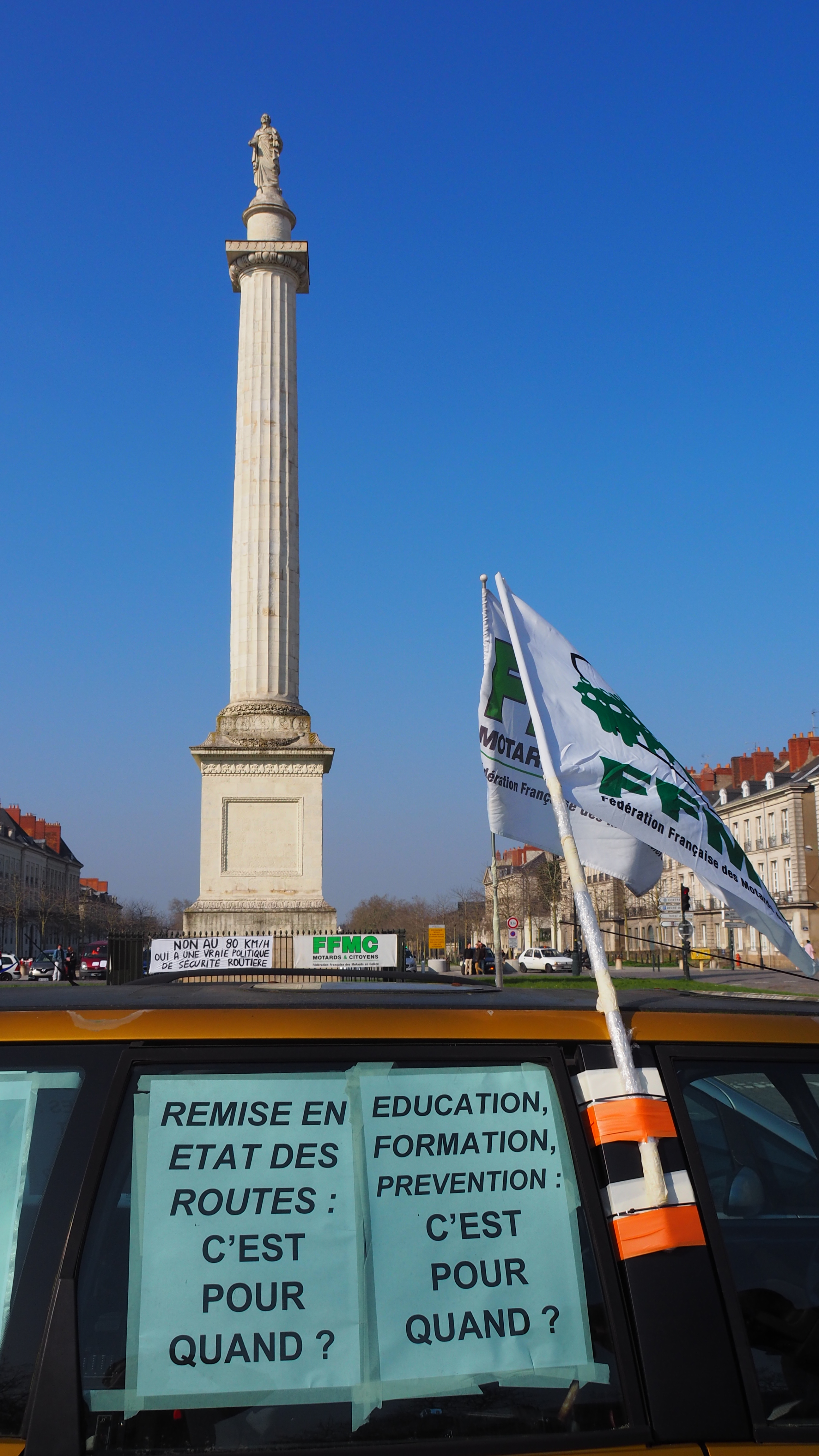 Messages clairs sur la voiture en tête de cortège