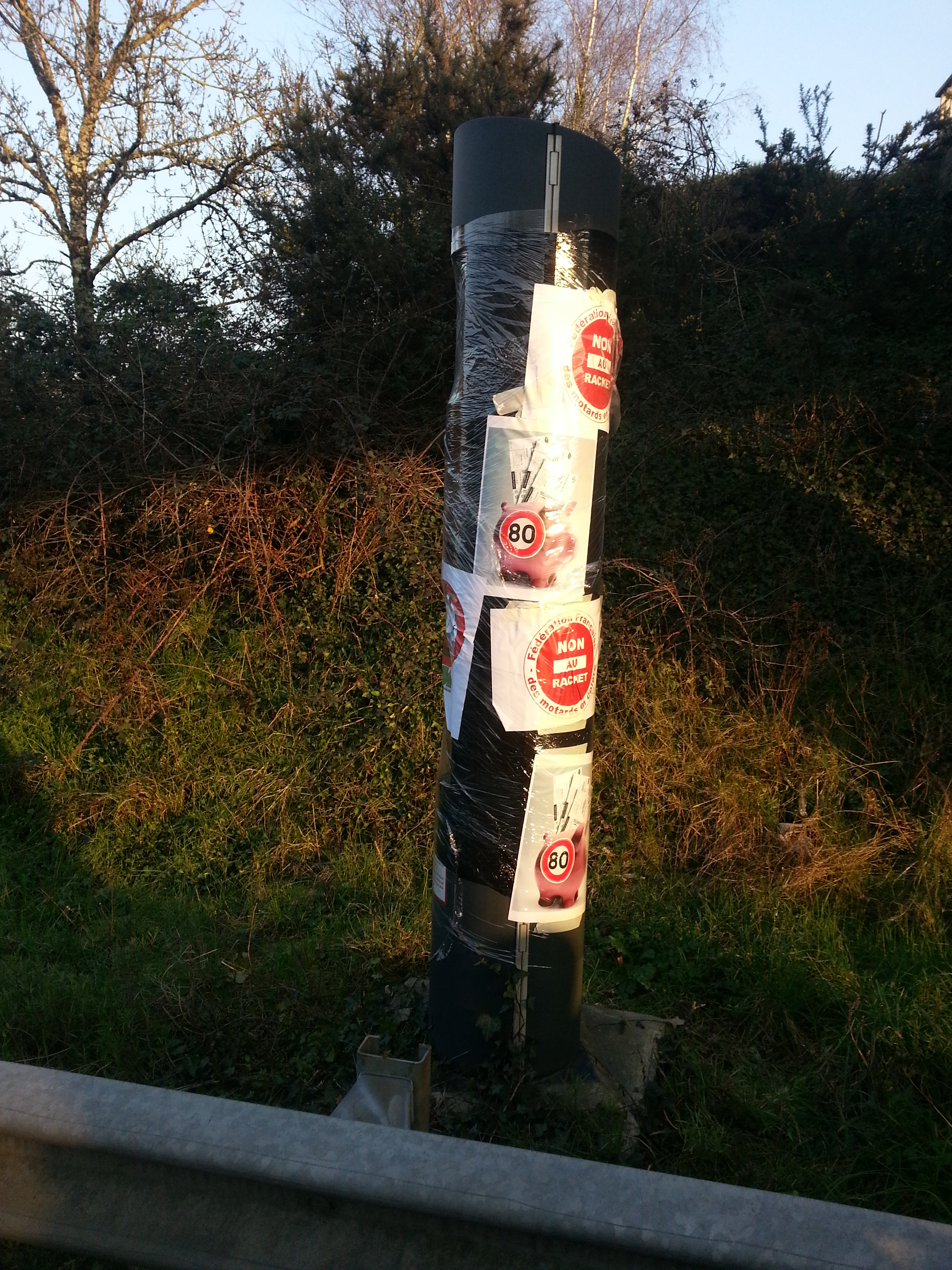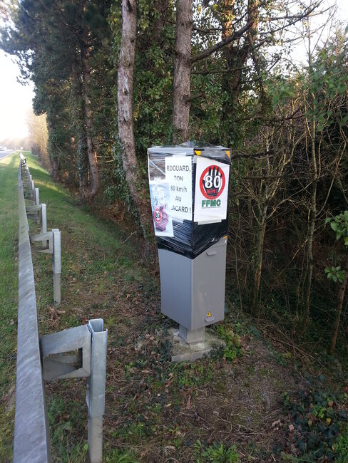 2 radars automatiques ont été bâchés et décorés avec des messages appropriés (radar double-sens de la D723 et celui du périphérique sud avant la Porte des Sorinières).