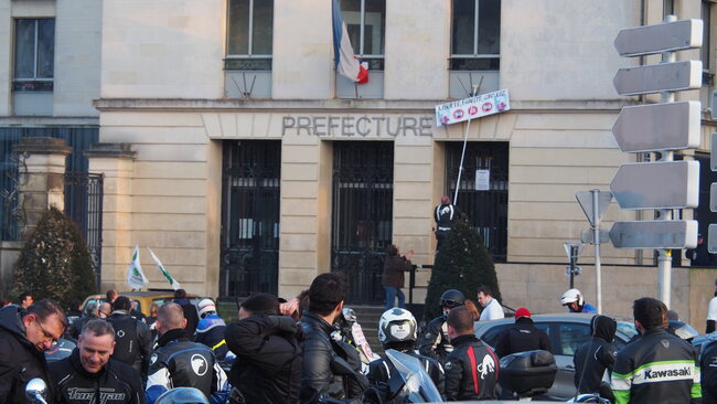 La manifestation s’est terminée vers 18H00 devant la Préfecture ... où un panneau LIBERTE, EGALITE, CIRCULEZ a été accroché à la façade de l’édifice public.