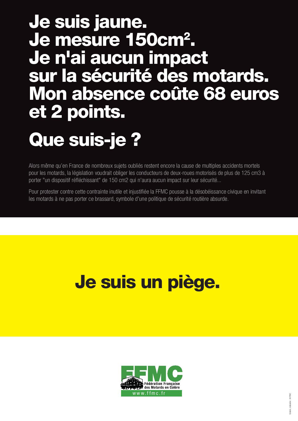 La FFMC 44 mettra à votre disposition 150 cm2 de papier fluo et des enveloppes. Vous pourrez ainsi exprimer votre désaccord avec cette mesure inadaptée, injuste et incohérente en écrivant un message à M. Le Président de la République.