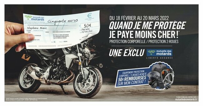Du 18 février au 20 Mars, quand je me protège je paye moins cher ! Pour tout achat d’un équipement de protection spécialement adapté à la pratique du 2-roues : la Mutuelle vous rembourse jusqu’à 50€ !