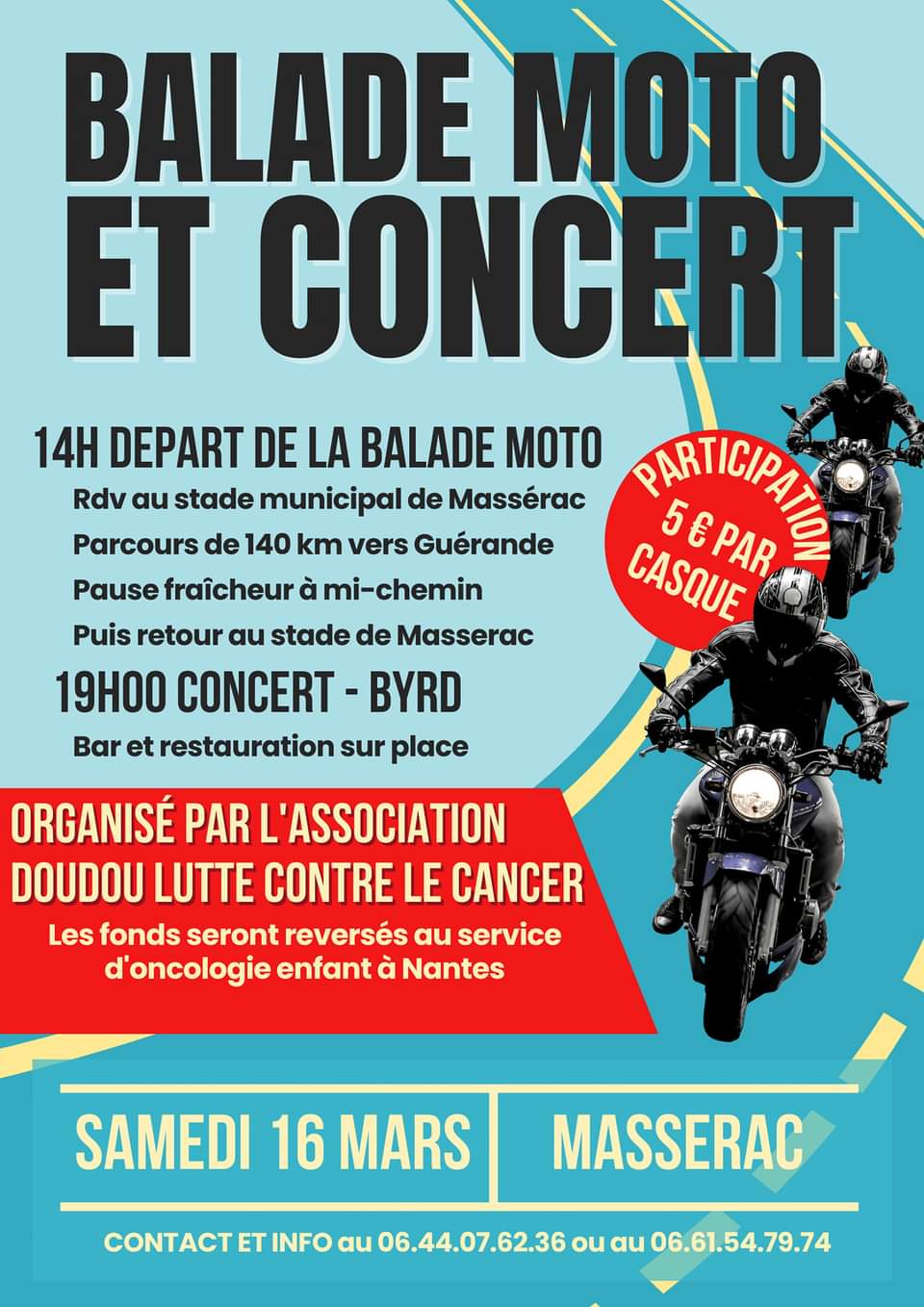 Balade moto et concert à Massérac (44) samedi 16 mars 2024