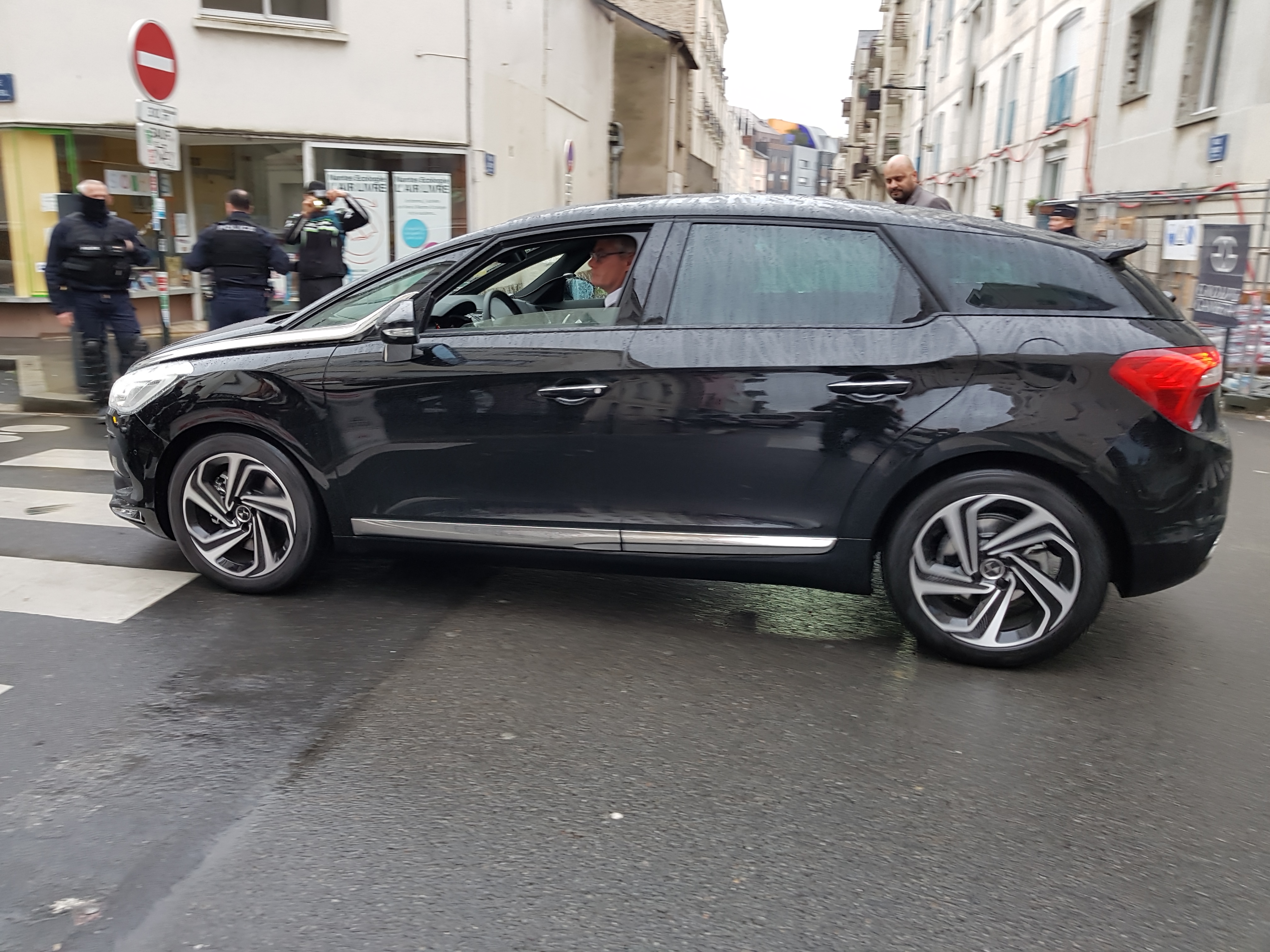 La voiture de Johanna Rolland arrive rue Monteil ... tiens Mme le Maire ne circule pas en vélo !