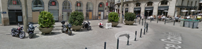 Place Graslin. Qui occupe le plus de place ? Les terrasses de café, les poubelles ... ou les deux-roues motorisés ?