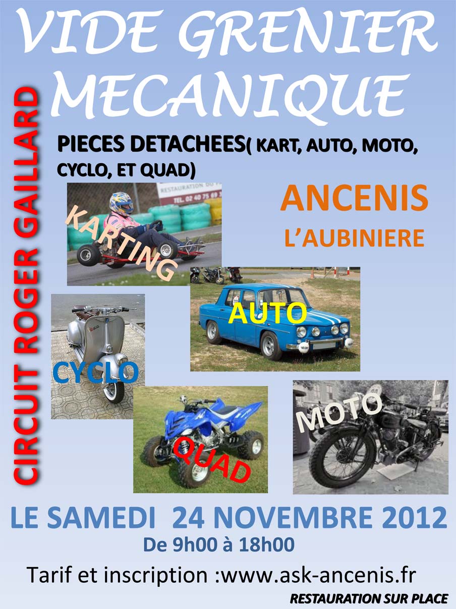 Vide-grenier mécanique à Ancenis samedi 24 novembre 2012 organisé par l’ASK Ancenis.