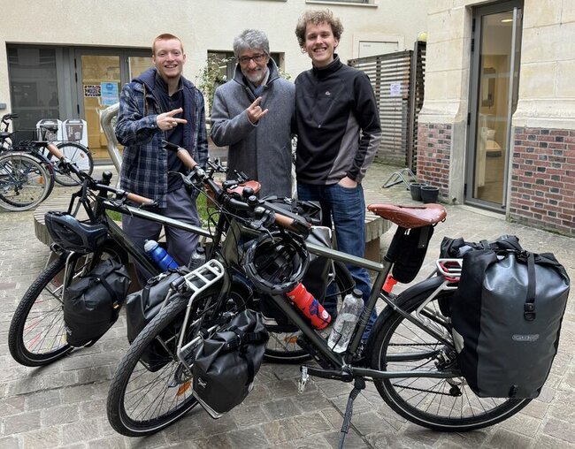 Quel plaisir d’assister au départ de Virgile Masson—Mauny et Oscar ALBER, deux étudiants de Sciences-Po Rennes partis vendredi depuis le Campus de Caen pour un tour de la Baltique à vélo. Deux aventuriers du quotidien, qui, au fil des kilomètres, vont interroger nos modèles de mobilité, observer ce qui fonctionne ailleurs et nous rapporter des idées neuves.