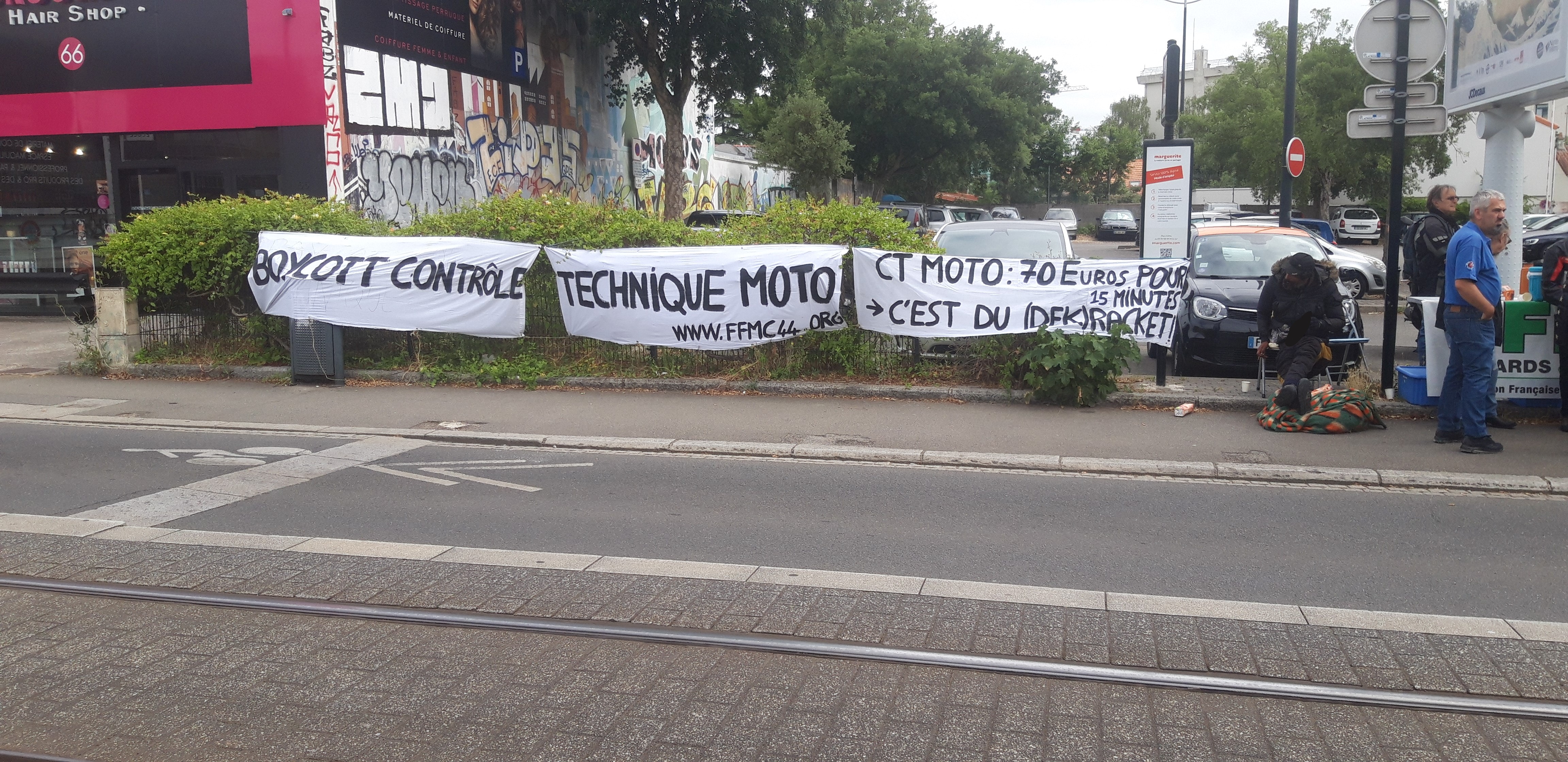 Samedi 28 juin 2025 de 10H00 à 12H30, la FFMC 44 organisait un « Café de la Résistance » devant le centre de contrôle technique AUTOVISION / MOTOVISON situé au 57, route de Vannes à NANTES pour continuer à afficher son opposition à cette vaste escroquerie qu’est le CT moto.