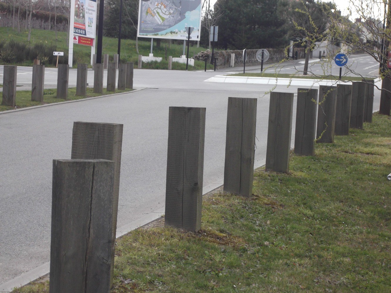 Deux rond-points carrés et poteaux en bois - Rue Jacques Monnet à SAINT-HERBLAIN (près de la salle de la Carrière)