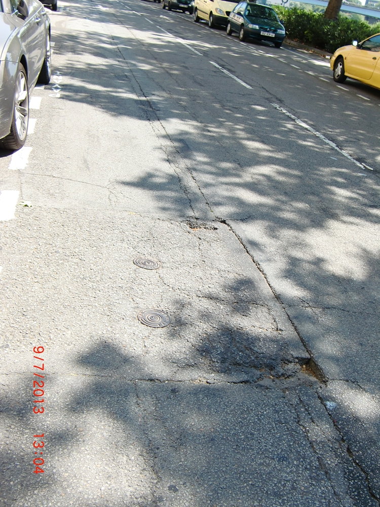 Réponse de Nantes Métropole du 13 février 2014 : la réfection de la chaussée est programmée pour 2014.