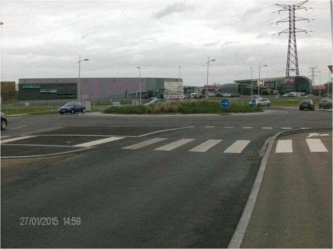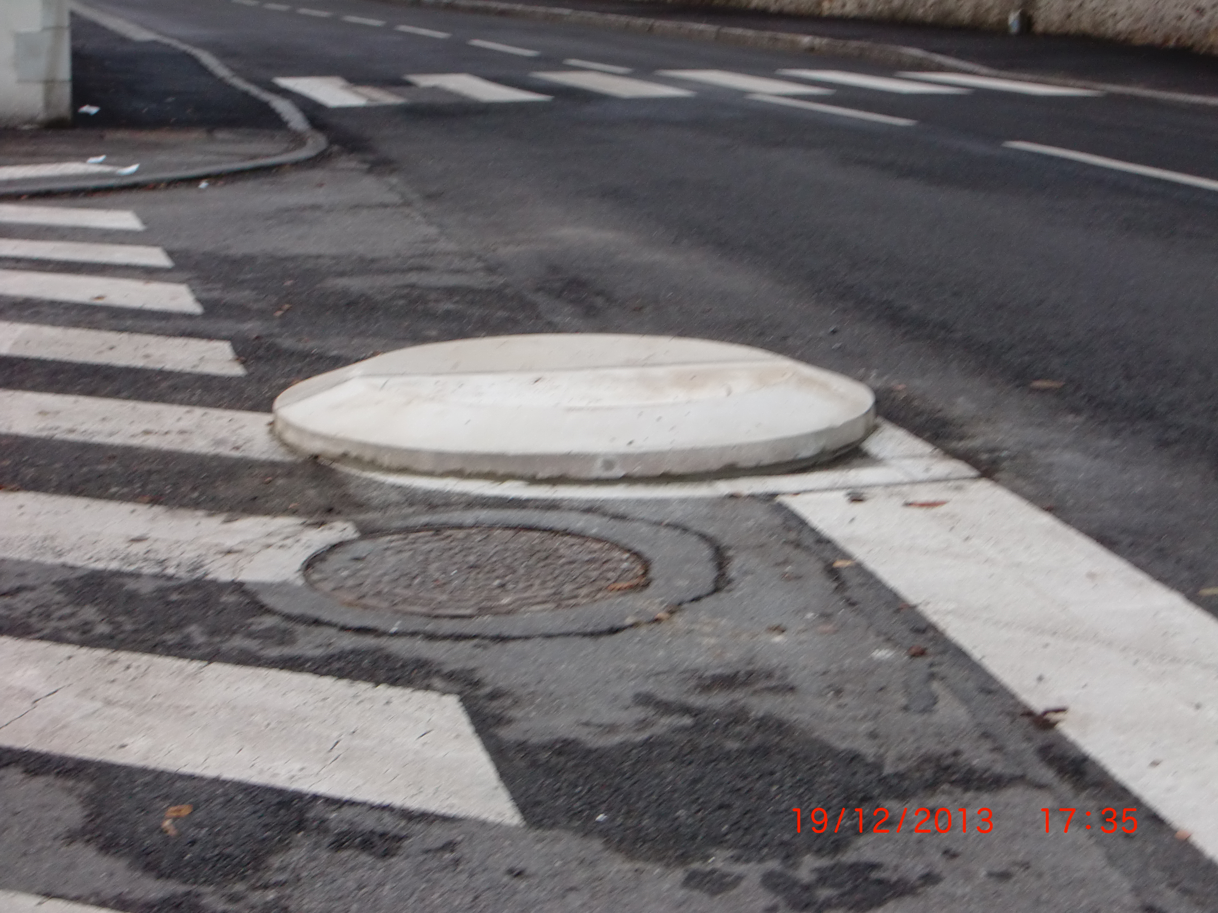 Très dangereux car non visible surtout la nuit (éclairage faible), sans signalétique et proche de la sortie d’un giratoire.