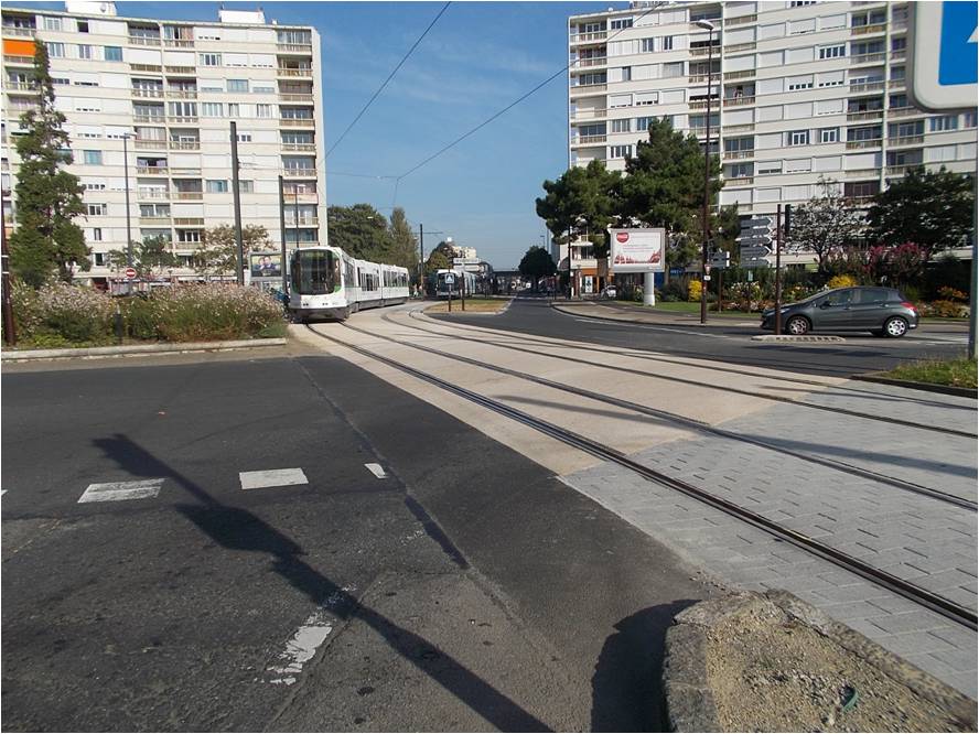 Un peu comme celui-ci du boulevard Alexandre Millerand à NANTES, mais non excentré. Circulation à éviter sous peine de glissade.