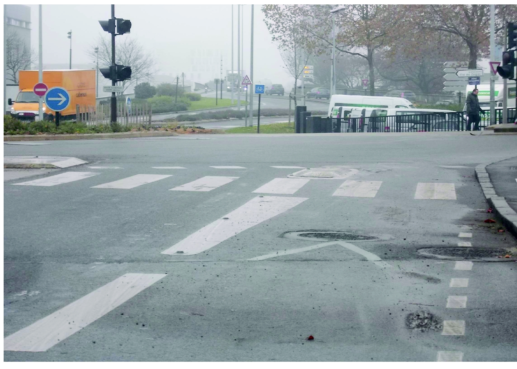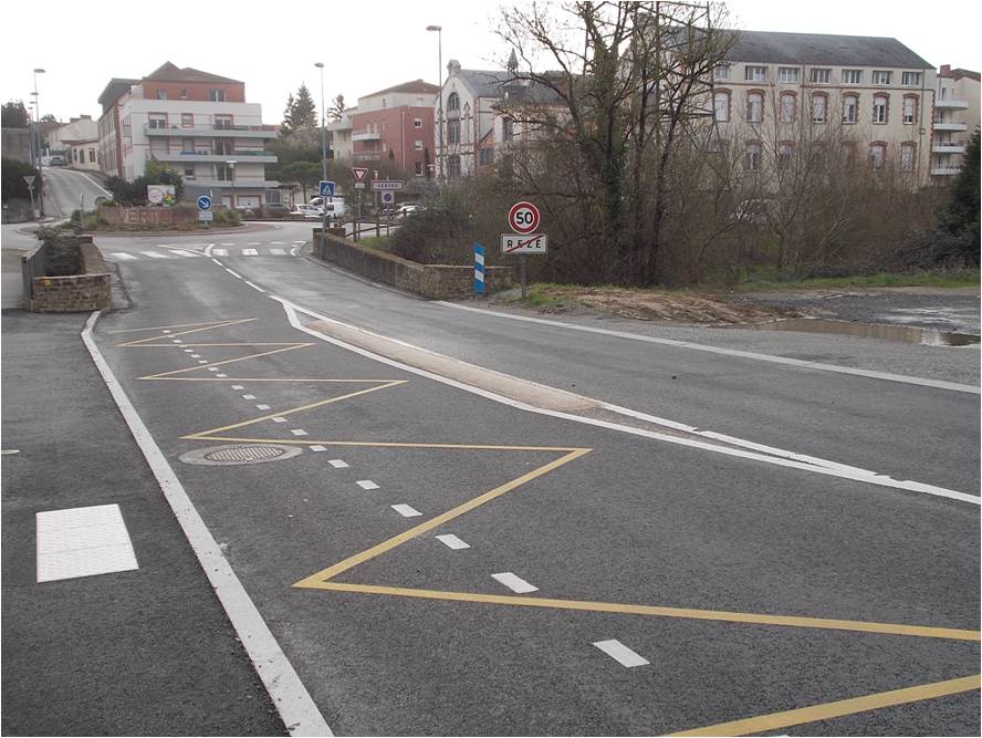 - > Panneaux indicateur de rétrécissements trop discrets, peinture zébras au sol réalisée et pose de bandes rugueuses effectuée