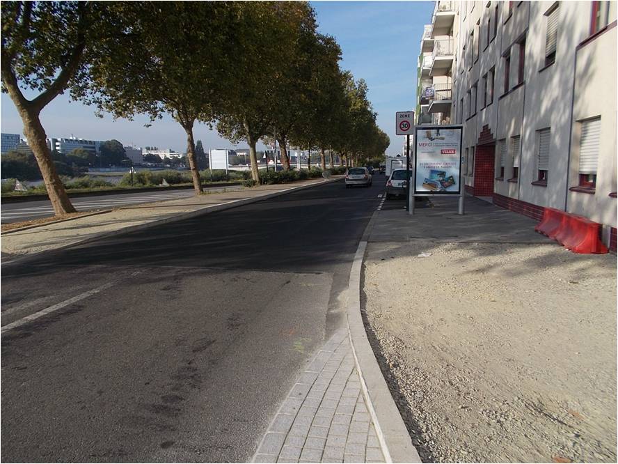 Relief très haut protégeant le début de la piste cyclable - Boulevard Gabriel Lauriol (quartier Petit Port) à NANTES