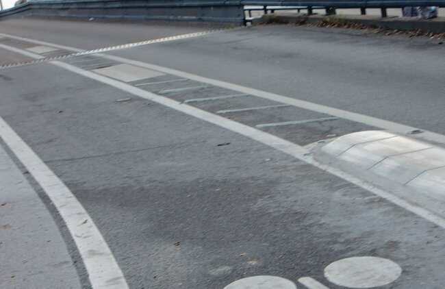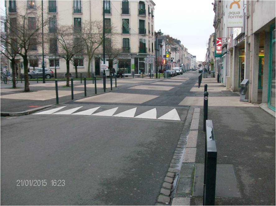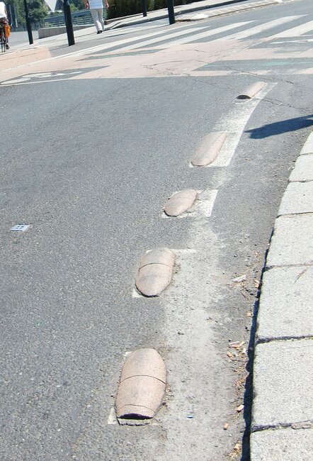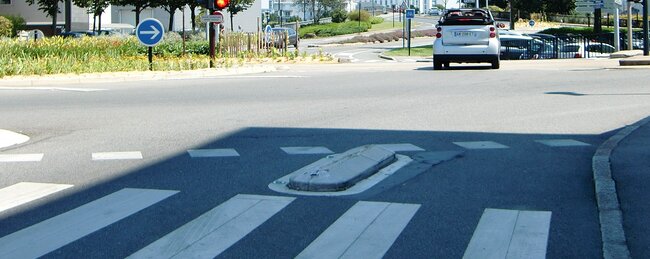 -> Relief haut remplacé par un relief moins haut et présignalisation par bande rugueuse.