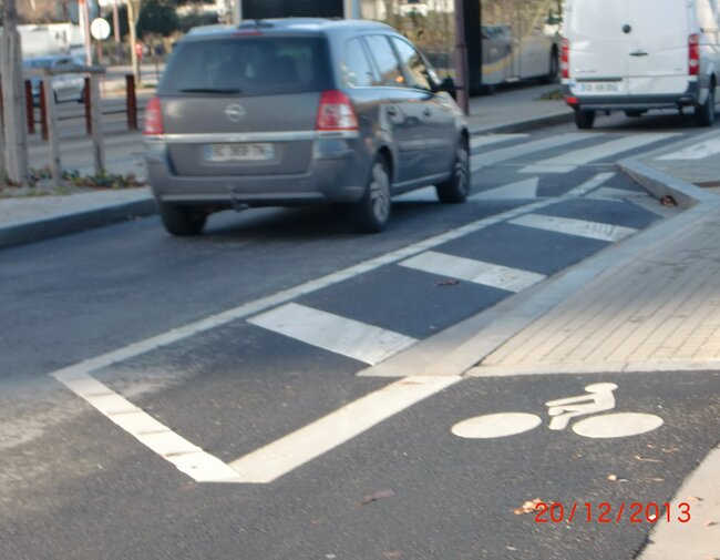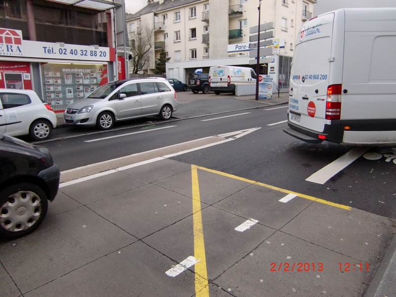 Cependant cela ne résoud pas le pas le problème de l’accès brutal sur la chaussée des vélos et sans visibilité si des véhicules sont stationnés, venant d’une mauvaise piste cyclable illégale sur trottoir !