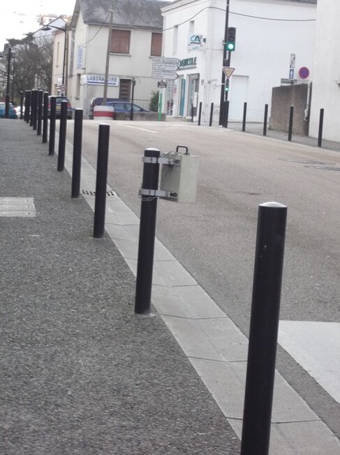 Réponse de Nantes Métropole du 1er juillet 2013 : remplacement des potelets par des modèles "fusibles" et remplacement des 4 premières "dents de requins" par des potelets mémoire de forme. Réalisation avant fin décembre 2013.