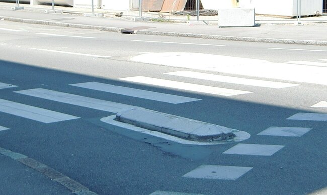 -> Massif béton remplacé par une plate-forme moins haute et pré-signalement par bandes rugueuses réalisé