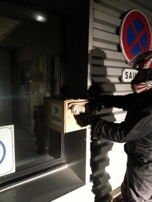 Dans la nuit du 04 au 05 mars 2016, quelques militants de la FFMC 44 ont procédé à l’emplumage de la boite aux lettres d’une quinzaine de centres de contrôle technique de la Loire-Atlantique.